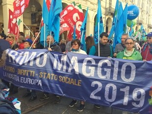 A Torino nella manifestazione che si conclude come da tradizione in piazza San Carlo, ad agitare gli animi ci sono il tema Tav e le prossime elezioni regionali: i sindacati hanno invitato a considerare il primo maggio "un momento di unione e non di divisione. Non c'è spazio né per i violenti né per chi vuole fare campagna elettorale con il rischio di provocare tensioni". Nonostante gli inviti, però appena iniziato il corteo ci sono state molte tensioni: la polizia ha bloccato, con una carica e manganellate, un gruppo di No Tav che da piazza Vittorio stava cercando di raggiungere la testa del corteo passando dai portici di via Po. C'è stato qualche spintone,e il movimento No Tav ha gridato "vergogna, fuori la Digos dal corteo". I manifestanti hanno lanciato bottiglie, lattine, aste di bandiere, e tazze.