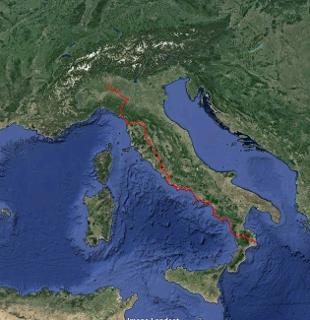 Più di 1200 chilometri in 40 giorni, una media di 30 chilometri al giorno attraversando paesi, città, sentendo gli accenti e il territorio cambiare sotto i suoi passi.