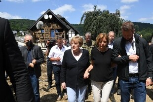 La cancelliera Angela Merkel nelle zone devastate della Renania-Palatinato ha visitato Schuld, fra le località più colpite dall'alluvione, che nel Land ha provocato la morte di 110 persone. La cancelliera è stata nella zona alluvionata dell'Eifel, insieme con la governatrice della Renania-Palatinato Malu Dreyer.