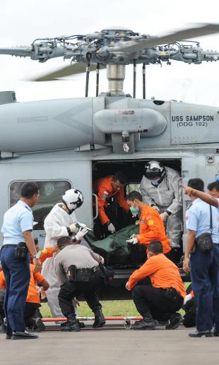 La parte più grande di quelle ritrovate misura circa 10 metri per cinque e si trova ad una profondità di 30 metri, al largo dell'isola del Borneo. Finora sono stati recuperati 30 corpi. Nelle operazioni di recupero sono impegnate 29 navi e 17 aeromobili. Si cerca la scatola nera, fondamentale per determinare la causa dello schianto.