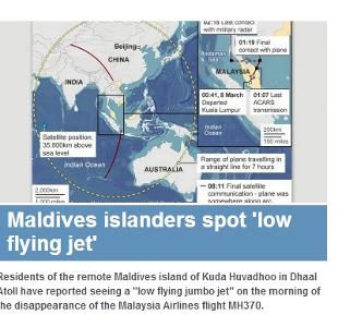 Secondo un esperto di aviazione interpellato dal sito maldiviano, è "probabile" che il volo MH370 abbia sorvolato le Maldive, mentre la possibilità che un altro aereo abbia sorvolato l'isola in quel determinato momento è "estremamente bassa".