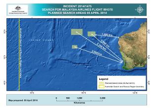 Nella zona 1.600 chilometri a ovest dell'Australia due navi stanno setacciando un percorso di circa 240 km lungo il quale, secondo nuovi calcoli della task force multinazionale di esperti, è più probabile che il Boeing 777-200 sia precipitato, verosimilmente per l'esaurimento del carburante.