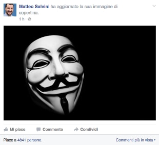 Anonymous attacca la pagina Facebook di Salvini