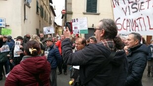 La protesta, con fischietti e tamburi, è durata circa mezz'ora, poi i manifestanti si sono trasferiti in corteo nel paese di Laterina, che dista circa un chilometro. E' stata una protesta pacifica, a distanza ravvicinata alla proprietà, e sotto lo sguardo delle forze dell'ordine che da mesi ormai sono impegnate nel servizio di controllo e sicurezza della casa del ministro. I manifestanti hanno gridato invettive contro il governo e il decreto che, a loro dire, li avrebbe totalmente privati dei loro risparmi in banca.