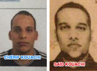 Chérif e Saïd Kouachi sono due fratelli franco-algerini di 32 e 34 anni, tornati dalla Siria quest'estate ed identificati grazie alla carta d'identità ritrovata dalla polizia nella Citroen C3 abbandonata. Sono nati in Francia, rimasti presto orfani e dati in affidamento; hanno entrambi precedenti legati al mondo dell'Islam radicale. Sono responsabili della strage alla redazione del settimanale "Charlie Hebdo".