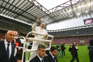Settantamila persone hanno accolto con grande calore Papa Francesco a San Siro, ultima tappa della sua visitia pastorale a Milano. Nello stadio Meazza si è tenuto l'incontro tra il Pontefice, i giovani cresimandi e le loro famiglie.