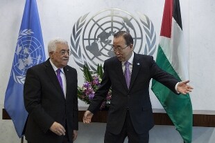 segretario generale dell'Onu, Ban Ki-moon, alla cerimonia per l'alzabandiera della Palestina al Palazzo di Vetro. Ban ha poi precisato: "Dobbiamo realizzare le aspirazioni che questa bandiera rappresenta, ossia Israele e Palestina che vivono fianco a fianco in pace e sicurezza".