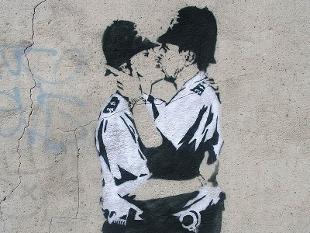 "Kissing coppers" è un fiore all'occhiello per la comunità di Brighton in Inghilterra che per 7 anni l'ha accolta su un muro accanto al pub Prince of Albert. Anche se molti vedevano quell’appassionato bacio tra due uomini in divisa come fumo negli occhi, il murale era comunque diventata una sorta di attrazione turistica, un piccolo santuario per i fan dell'artista inglese. Negli anni, tuttavia, l'opera ha subito anche dei danneggiamenti, cosa che nel 2008, ha convinto il proprietario del pub a venderla ad una galleria newyorchese. Il bacio è stato così trasferito su tela e al suo posto è stato collocato un fac simile, suscitando molte critiche. Molti fan e addetti ai lavori, infatti, hanno sottolineato che una componente fondamentale della street art è costituita dalcontesto in cui essa viene creata e pensata, e di conseguenza non ha senso estirpare un’opera per trasferirla in una galleria d’arte.