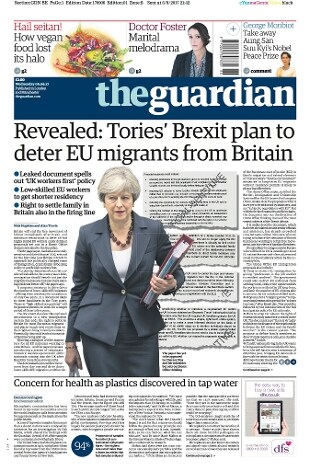 The Guardian front page, Wednesday 06.09.17 | Revealed: Tories’ Brexit plan to deter EU migrants from Britain pic.twitter.com/uvm5omtiDZ