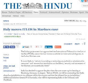 Secondo The Hindu, l'India sta cercando di avvalersi per sostenere le sue argomentazioni davanti al Cpa di un esperto in arbitrati internazionali di Ginevra. Si deve ricordare che l'istanza presentata dall'Italia all'Itlos contiene due richieste: la prima è che l'India "si astenga dal prendere o eseguire ogni misura giudiziaria o amministrativa" contro i due Fucilieri di Marina e "dall'esercitare ogni forma di giurisdizione" a proposito dell'incidente.
