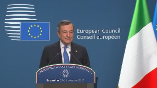 La questione della Polonia non pone alternative. "Quello che è stato messo in discussione", dice Draghi, "non è una legge secondaria dell'Unione, ma il Trattato, una legge primaria. Le regole sono chiare, e qui è stata messa in discussione la base dell'Unione. Bisogna però mantenere un dialogo e una strada politica aperta con la Polonia. Essere chiari sulla difesa dei principi dell'Unione ma disponibili a continuare il dialogo con estremo rispetto delle opinioni divergenti". "Nessuno ha dubbi che questo governo sia europeista. Abbiamo detto sin dall'inizio che chi fa parte del governo deve rispettare il diritto dell'Unione" e considerare l'Euro "un grande successo", ha risposto il premier a chi gli chiedeva della posizione della Lega in merito al nodo della Polonia.