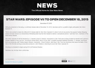 “Siamo felici di annunciare la data di uscita ufficiale del film nel 2015”, dichiara Alan Horn, presidente dei Walt Disney Studios. “Star Wars: Episodio VII si inserirà così nel periodo delle festività natalizie e lo straordinario team che se ne occuperà avrà il tempo necessario per realizzare una pellicola straordinaria”.