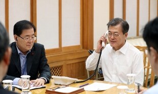 Moon Jae-in al telefono con Trump (Ansa, archivio)
