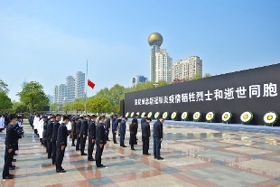 La Cina si è fermata e ha onorato la memoria delle oltre 3.300 vittime del coronavirus e dei primi 14 'martiri' caduti in prima linea nell'Hubei lottando contro la pandemia. L'intero Paese s'è raccolto in silenzio alle 10 (le 4 in Italia) per 3 minuti e nell'aria sono risuonate sirene e clacson di auto. Il presidente Xi Jinping e i vertici di Partito comunista e governo, tutti con un fiore bianco sul petto, hanno tenuto una cerimonia alla Zhongnanhai, compound di Pechino della leadership, sostando in raccoglimento davanti alla bandiera nazionale cinese a mezz'asta.