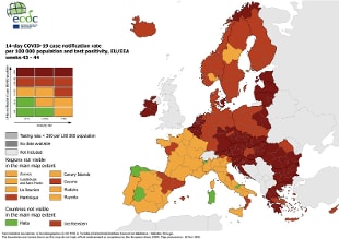 Friuli Venezia Giulia, Provincia di Bolzano, Marche e Calabria virano al rosso nella mappa aggiornata sull'incidenza da Covid in Europa, curata dal Centro europeo per la prevenzione e il controllo delle malattie.