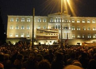 Poco prima di entrare all'Eurogruppo, il ministro greco Varoufakis ha incontrato il direttore del Fmi, Christine Lagarde, che ha parlato di 'buon incontro' con il rappresentante del governo di Tsipras. La delegazione di Atene - ha riferito un funzionario dell'esecutivo ellenico ieri pomeriggio - ha discusso con Lagarde, Dijsselbolem, e il presidente del gruppo di lavoro europeo, Thomas Wiesercon la possibilità di un accordo ponte che prenda il posto del piano di assistenza in scadenza il 28 febbraio. Favorevole a trovare un buon accordo, che "tenga conto del risultato elettorale, di cui non si può non tenere conto", è il commissario Ue Moscovici: "Vogliamo Atene nell'euro, lavoriamo a compromesso". Ieri sera in Grecia, proprio mentre a Bruxelles era in corso il vertice, migliaia di persone sono scese in strada per sostenere le richieste del governo di Alexis Tsipras che oggi, per la prima volta dopo l'elezione, incontrerò al Consiglio dei capi di Stato e di governo dell'Ue Angela Merkel. "Con la nostra partecipazione vogliamo sostenere il governo Tsipras, che lotta per i nostri diritti", ha detto una donna.