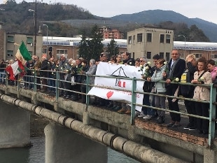 43 rintocchi di campana tibetana e 43 rose bianche lasciate sotto il ponte in ricordo delle 43 vittime del crollo di ponte Morandi. Così, alle 11.36, ora del crollo, il ricordo della tragedia. La cerimonia si è svolta al limite della zona rossa vicino alla pila 10 del viadotto, in via Fillak a Certosa.