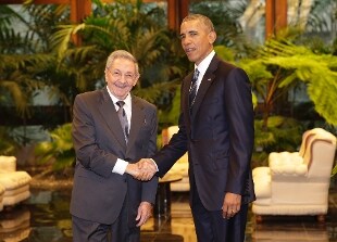Raul Castro ha accolto Barack Obama al Palazzo della Rivoluzione dell'Avana, teatro del loro storico terzo faccia a faccia, il primo sul suolo di Cuba.