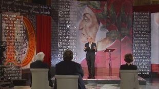 "Dentro di me tutto danza, è un balletto, saluto gli italiani a casa, in questo momento con ancora più affetto e calore", dice Roberto Benigni introducendo la lettura del XXV canto del Paradiso. Il premio Oscar rende omaggio al Dante politico, ironizzando sul Pd ("Alla fine ha detto basta con la politica e ha fatto 'parte per se stesso'. Ha fondato il partito di Dante, il Pd, non ha vinto mai. Si sono scissi, c'erano troppe correnti: questo Pd sono 700 anni che non trova pace") e poi al Dante poeta: "Il 25 marzo è la data in cui inizia il suo viaggio nei tre regni dell'oltretomba, l'avventura più bella della poesia di tutti i tempi. Dante ha scritto il Paradiso per condurre alla felicità gli uomini: il fine di questa sublime cantica è il compimento del desiderio infinito che abbiamo, ognuno di noi, di immedesimarci con la realtà divina".