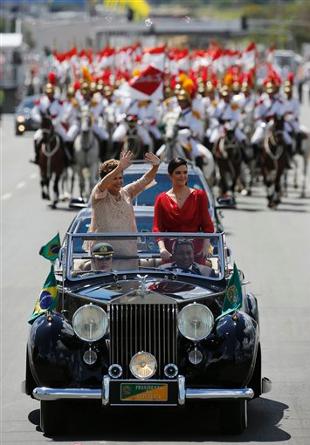 Per la neopresidente, 21 colpi a salve, sparati prima di dirigersi al palazzo presidenziale di Planalto per rivolgersi alla nazione e ricevere i giuramenti da parte dei 39 membri del suo Gabinetto. La cerimonia si conclude con un ricevimento a palazzo Itamaraty, sede del ministero degli Esteri.