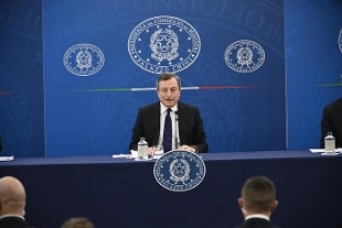 Prima conferenza stampa del presidente del Consiglio, Mario Draghi, al termine di una sofferta riunione del Cdm dalla quale, però, è uscito il via libera al decreto