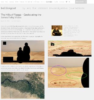 Dettagli come un paesaggio verde sullo sfondo, una strada sterrata, la forma specifica di alcune colline: attraverso questi elementi del territorio il blogger inglese è risalito al luogo esatto. Anzi, Higgins arriva addirittura a formulare un’ipotesi di quali azioni possano essere state compiute prima della registrazione del video: in una delle grafiche, infatti, disegna anche la dinamica. Da una parte il "varco" dove può essere arrivato sull’altopiano il commando con la macchina, poi i punti dove sono state montate le videocamere che hanno ripreso la macabra scena, infine il luogo esatto dove è stato posizionato Foley, inginocchiato, con accanto il boia dall’accento inglese che minaccia direttamente l’America.