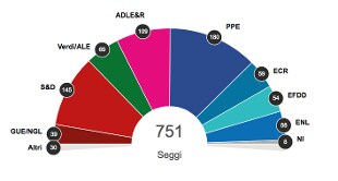 Per la Lega 28 eurodeputati, per il Pd 18, per il M5s 14, per Forza Italia 7, per FdI 5, per Svp 1. La Lega fa parte dell'Enl (Gruppo Europa delle Nazioni), il Pd dell'S&D (Socialisti e Democratici), il M5S dell' Efdd (Gruppo Europa della Libertà e della Democrazia diretta), Forza Italia del Ppe (Popolari europei), Fdl dell'Ecr (i Conservatori) e il Svp del Ppe