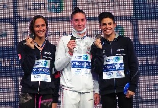 Le due azzurre nulla hanno potuto contro la strapotere della Kirpichnikova che ha toccato in 15'18"30 a soli 29 centesimi dal record del mondo che appartiene dal 16 novembre del 2019 alla tedesca Sarah Koehler. Per la 21enne atleta siberiana l'oro nei 1500 va a bissare quello negli 800 stile libero.