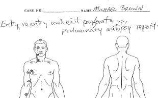 Il dottor Baden ha aggiunto che Brown è stato colpito almeno sei volte, ma soltanto tre proiettili sono stati recuperati dal suo corpo. Il medico, però, non ha ancora visto i raggi X e non ha avuto accesso alle testimonianze e alle dichiarazioni della polizia.