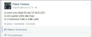 La pagina è quella di Fabio Tortosa, che dichiara di essere un poliziotto (e rappresentante sindacale, del Consap), e che il 9 aprile, due giorni dopo la sentenza europea di condanna dell'Italia, ha difeso l'irruzione alla Diaz, raccogliendo in poco tempo 191 "mi piace".