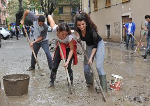 Come dopo l'alluvione del 2011, moltissime persone, in gran parte ragazzi, hanno iniziato a ripulire la città. Il capoluogo ligure riparte dalla solidarietà. Malore per una 27enne impegnata a spalare la melma