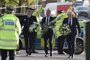Boris Johnson, si è recato sul luogo del delitto, accompagnato dal ministro dell'Interno Patel e dal leader laburista Starmer