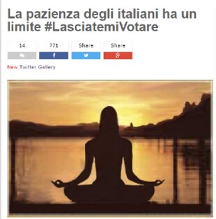 "La pazienza degli italiani ha un limite" scrive il Movimento in un post sotto l'ashtag #LasciatemiVotare, evocando la canzone di Toto Cutugno, "L'italiano": "Lasciatemi votare con la matita in mano..."