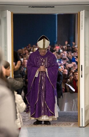 Papa Francesco apre la porta santa dell'ostello della Caritas di Roma