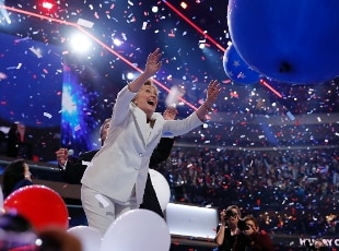 Emozionata e tesa quando sale sul palco per il discorso di chiusura della convention democratica, l'ex first lady si scalda con il passare dei minuti e con gli applausi e i cori del pubblico. In platea solo pochi manifestanti: cercano di farsi sentire ma sono ammutoliti dal resto del pubblico al grido di 'Hillary Hillary'.