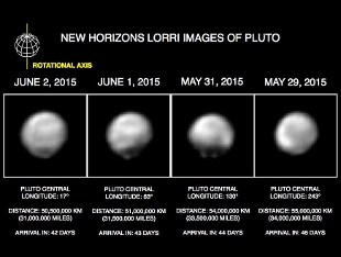 Nel video si notano chiaramente aree più brillanti e altre più scure, la cui natura sarà più chiara quando la sonda sarà più vicina a questo mondo gelido e misterioso posto ai confini del Sistema Solare. New Horizons si trova a quasi 4 miliardi di chilometri dalla Terra e a meno di 40 milioni di chilometri dal suo obiettivo, che raggiungerà il 14 luglio.