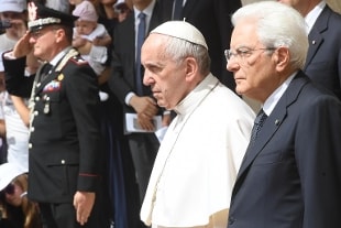 "L'Italia e l'insieme dell'Europa - ha rilevato il Papa nel suo discorso al Quirinale - sono chiamate a confrontarsi con problemi e rischi di varia natura, quali il terrorismo internazionale, che trova alimento nel fondamentalismo; il fenomeno migratorio, accresciuto dalle guerre e dai gravi e persistenti squilibri sociali ed economici di molte aree del mondo; e la difficoltà delle giovani generazioni di accedere a un lavoro stabile e dignitoso, ciò che contribuisce ad aumentare la sfiducia nel futuro e non favorisce la nascita di nuove famiglie e di figli". "Mi rallegra però rilevare - ha aggiunto Bergoglio - che l'Italia, mediante l'operosa generosità dei suoi cittadini e l'impegno delle sue istituzioni e facendo appello alle sue abbondanti risorse spirituali, si adopera per trasformare queste sfide in occasioni di crescita e in nuove opportunità". "Ne sono prova tra l'altro - ha osservato il Papa a proposito delle sfide e rischi che l'Italia può trasformare in opportunità - l'opera di primo soccorso garantita dalle sue navi nel Mediterraneo e l'impegno di schiere di volontari, tra i quali si distinguono associazioni ed enti ecclesiali e la capillare rete delle parrocchie". "Ne è prova anche - ha sottolineato il Pontefice - l'oneroso impegno dell'Italia in ambito internazionale a favore della pace, del mantenimento della sicurezza e della cooperazione tra gli Stati. Vorrei anche ricordare - ha aggiunto - la fortezza animata dalla fede con la quale le popolazioni del Centro Italia colpite dal terremoto hanno vissuto quella drammatica esperienza, con tanti esempi di proficua collaborazione tra la comunità ecclesiale e quella civile".