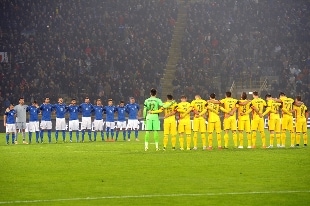 Il calcio europeo commemora le vittime di Parigi. Pari 2-2 fra Italia e Romania