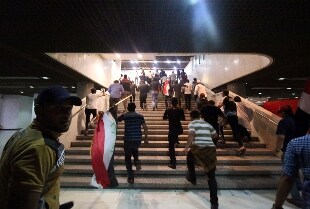 Manifestanti sciiti escono dal Parlamento dopo l'assalto