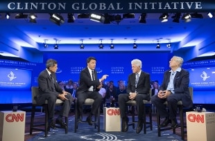 Renzi, sempre a margine dell'incontro, si è detto felice che la "Clinton Global Initiative abbia aperto una parte della propria iniziativa sui temi della crescita, dell'Europa e della sua identità. Sono questioni sulle quali stiamo lavorando anche noi da tempo", ha concluso il premier.
