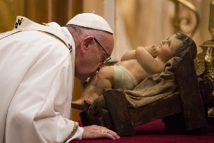 "Se vogliamo festeggiare il vero Natale - ha affermato Bergoglio - contempliamo questo segno: la semplicita' fragile di un piccolo neonato, la mitezza del suo essere adagiato, il tenero affetto delle fasce che lo avvolgono. Li' sta Dio".
