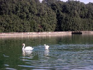 Ferdinando e Carolina, due esemplari di cigno bianco sono stati liberati nello specchio d'acqua al centro del Parco Reale