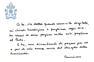 La preghiera va in rete: il Papa pubblica un chirografo su Twitter e Instagram