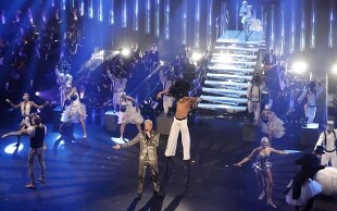 Mimi, ballerini, trampolieri, acrobati dietro e intorno a Claudio Baglioni. L'incanto, lo stupore: è questo il messaggio, "il nostro mestiere è regalare meraviglia al pubblico" dice il direttore artistico, spiegando il senso della performance, dedicata ai 24 artisti in gara.
