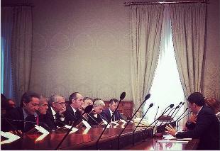 La riunione si è svolto nella Sala Verde di Palazzo Chigi con tutti i presidenti delle Regioni - con l'eccezione del lombardo Roberto Maroni, sostituito da Massimo Garavaglia, coordinatore degli assessori regionali - guidati dal governatore del Piemonte Sergio Chiamparino. Per il governo erano presenti, oltre a Renzi e al il sottosegretario alla presidenza del Consiglio Graziano Delrio, il ministro per gli Affari regionali Maria Carmela Lanzetta, e il sottosegretario agli Affari regionali Gianclaudio Bressa.