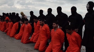 Nel video diffuso stasera si vedono gli ostaggi in tuta arancione camminare in spiaggia accompagnati dai boia, che li costringono a chinarsi e poi li sgozzano. Si vede l'acqua del Mediterraneo colorarsi di rosso.