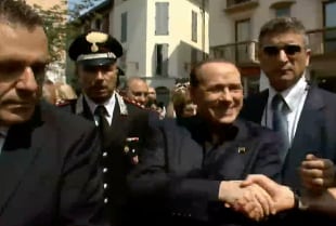 Benedetti consegnando la casa editrice Mondadori a Silvio Berlusconi.