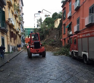 Maltempo a Napoli. Paura a Chiaia per una frana. 8 auto sepolte