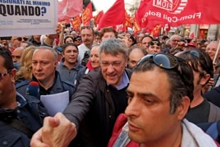 All’esecutivo Landini rimprovera la mancanza di confronto, "in continuità con Monti e Letta e c'è un peggioramento rispetto a quando c'era Berlusconi". Una scelta che determina per la Fiom non il cambiamento del Paese ma “un processo di regressione”. In particolare Landini si scaglia contro quelli che definisce “spot elettorali, slide e balle raccontate”, la logica padronale del governo.