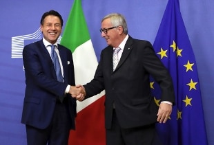 "Non litighiamo, we are friends": così il premier Giuseppe Conte ai giornalisti che fotografavano la stretta di mano con Juncker al suo ingresso al palazzo Berlaymont della Commissione Ue.